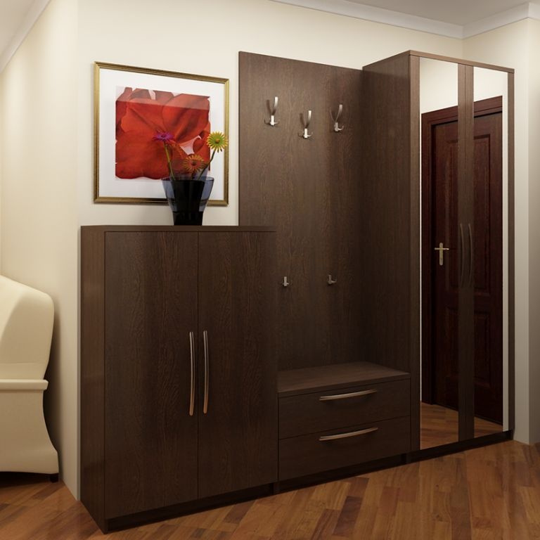 Экономичная прихожая на заказ с открытой секцией и разпашными фасадами.