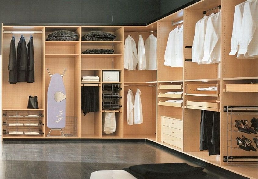Встроенная угловая гардеробная комната.