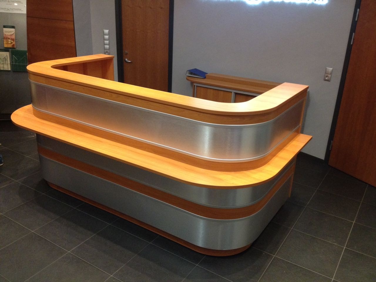 Главная > Каталог > Ресепшн > 3. Оранжевая стойка ресепшн с алюминиевыми вставками