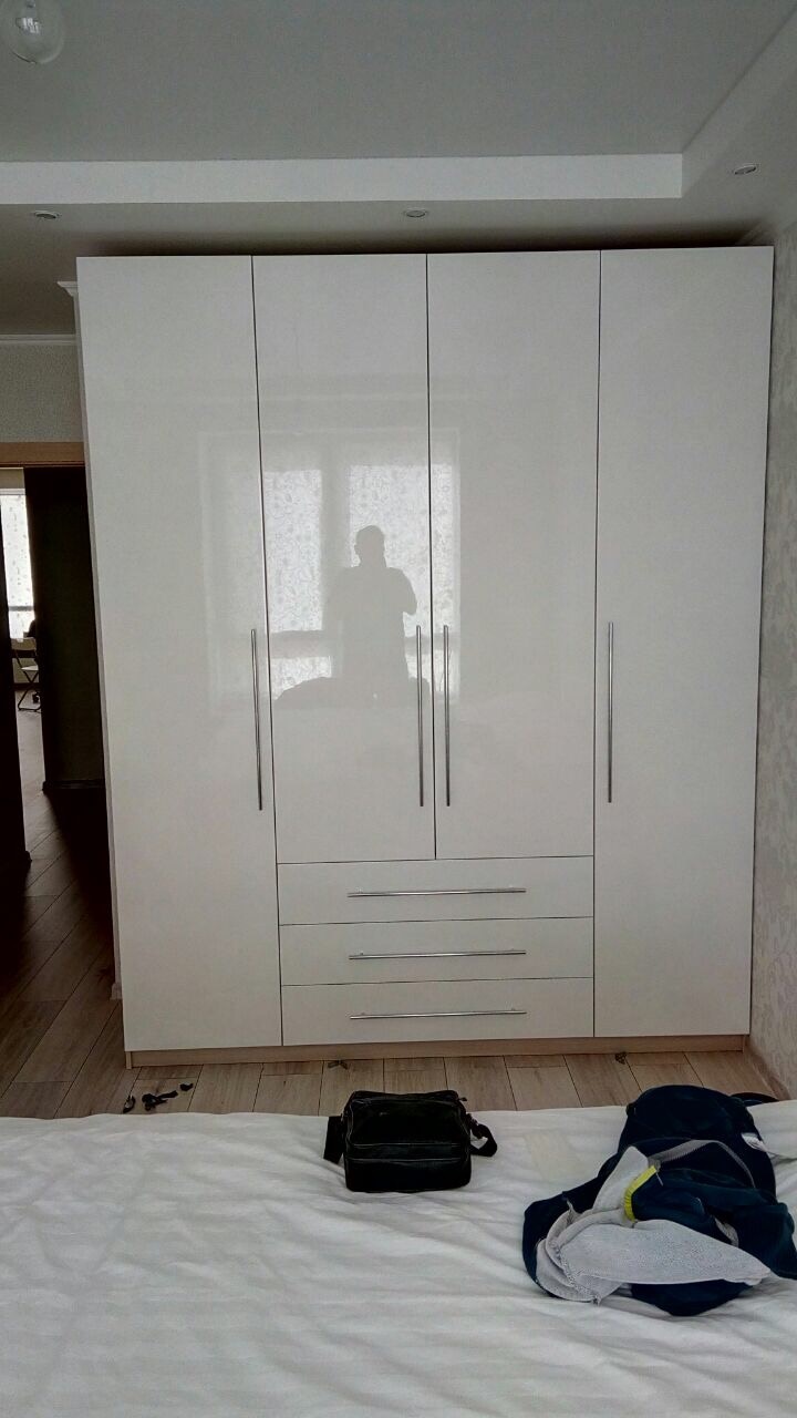 Корпусный шкаф в распашными глянцевыми фасадами на заказ.