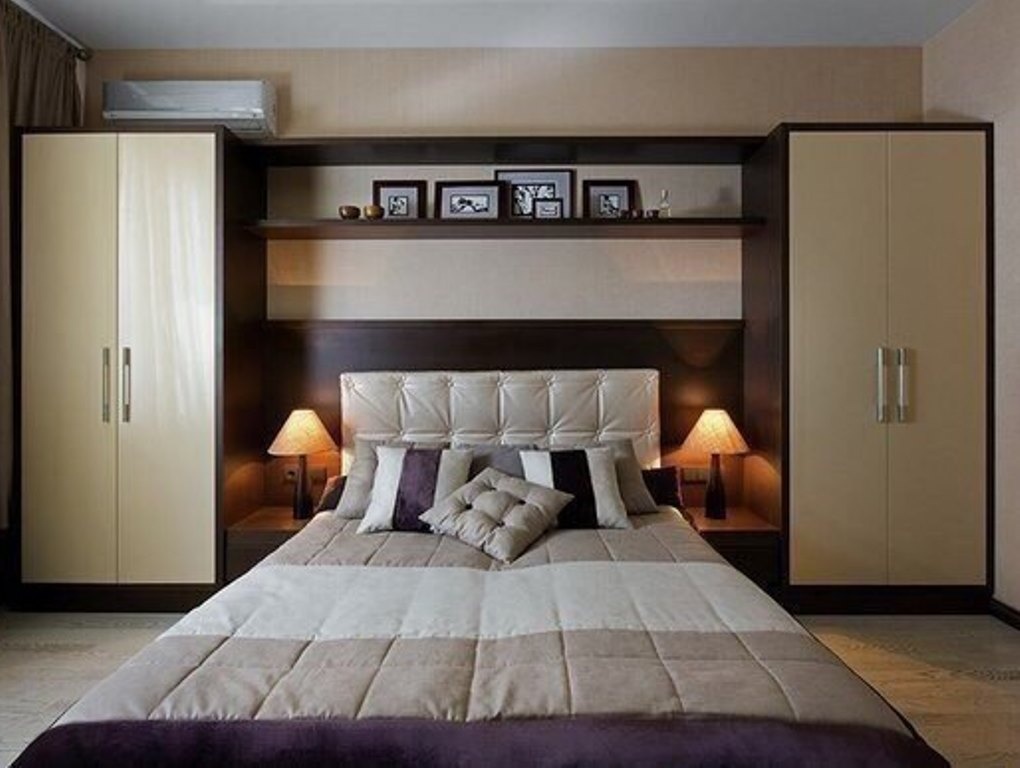 Для малогабаритной спальни прекрасно подойдет кровать с подъемным основанием, под которым находится обширное пространство для хранения одежды и постельных принадлежностей. Однако спальни – это не только удобная кровать, но и вместительные шкафы.