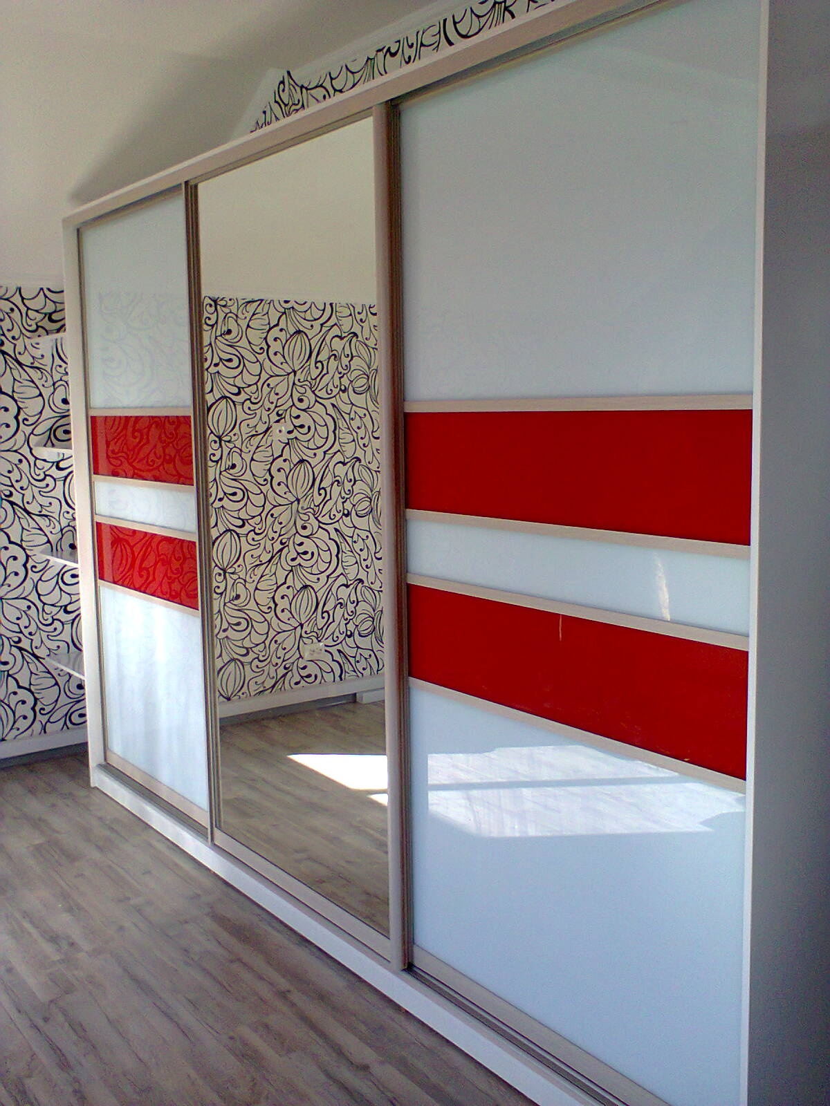 Фасад Двери-купе "Комбо" - бежевое стекло Лакобель + зеркало Серебро.